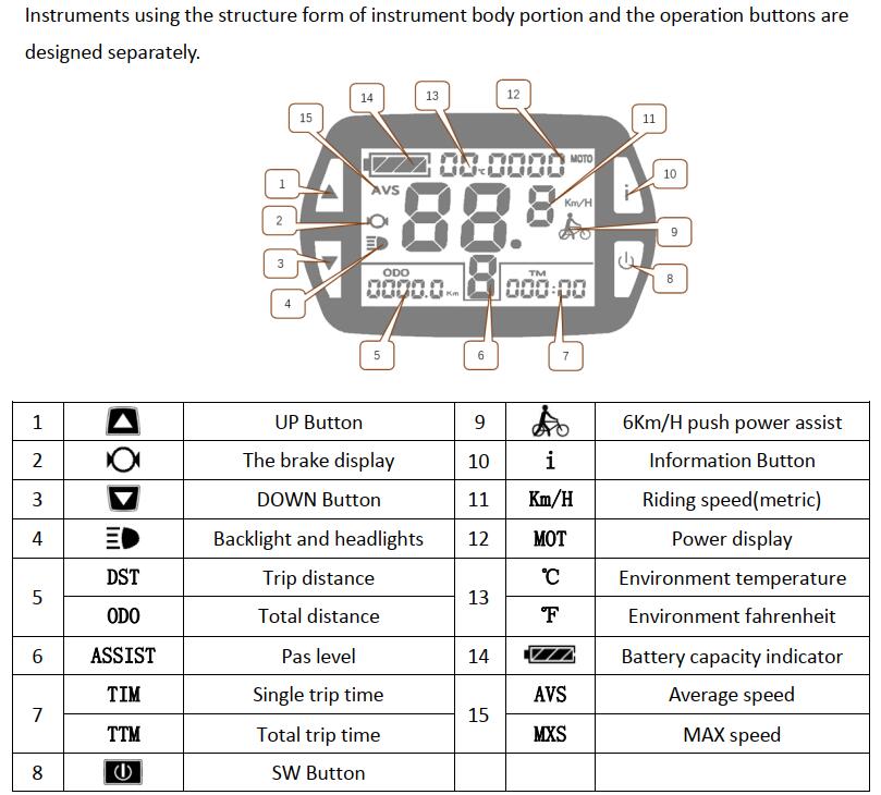 | Model | Elepedol LCD10Y Integrated functional digital ebike LCD display |