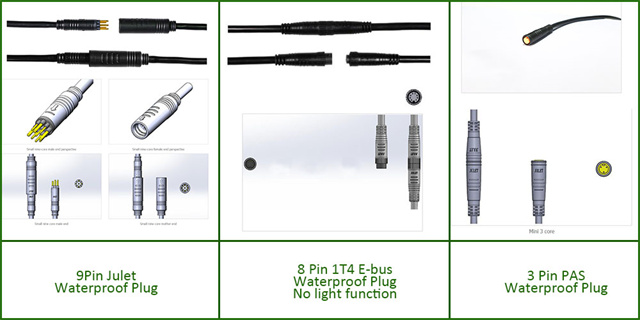 Because the ebike kit system will use1-5 bus cable as connection, so we can transfer some functional cables there: